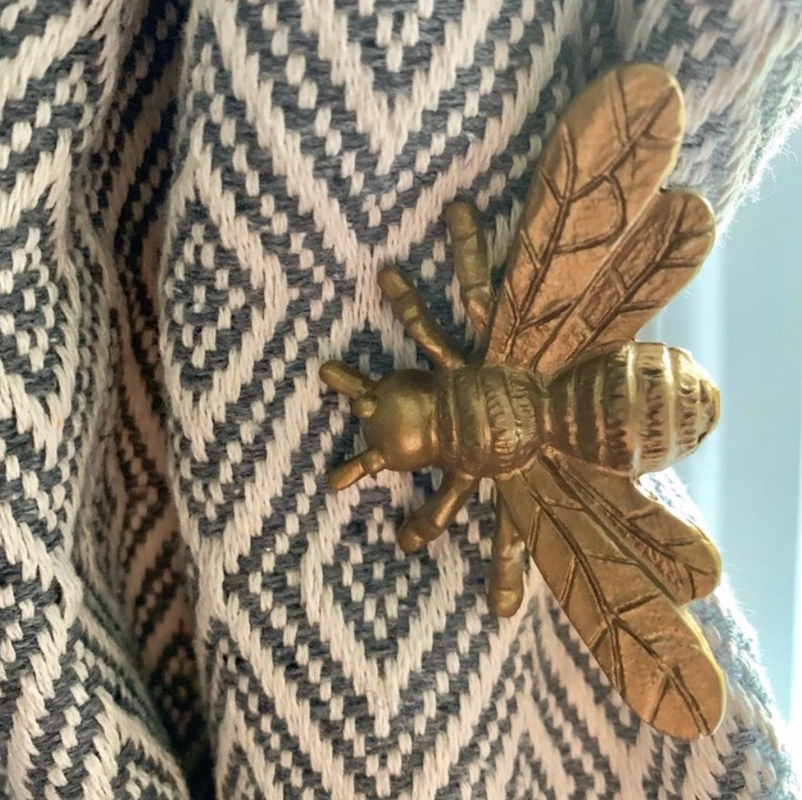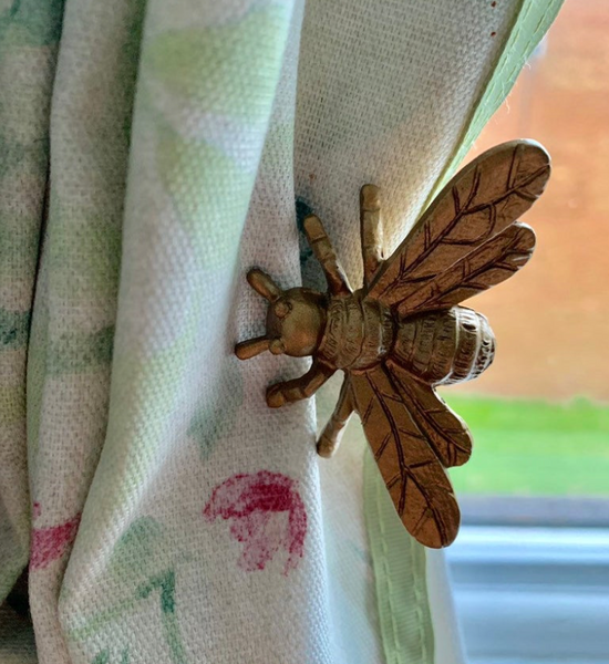 A Bumble Bee Hook / Curtain Tieback that can be used a coat hook or curtain tieback!